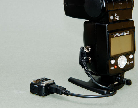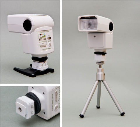 | A cold shoe adopter is available for FlashQ receiver. This adopter makes the remote flash gets setup or positioning easily. The 1/4" screw threads underneath adopter provides another option for tripod mount. |