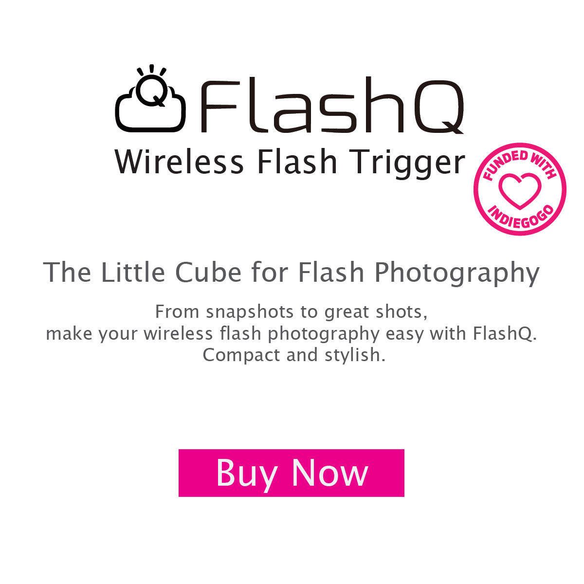 | This little cube design makes FlashQ fit in any cameras with standard ISO hot shoe. Its stylish outlook perfectly matches with your camera. |