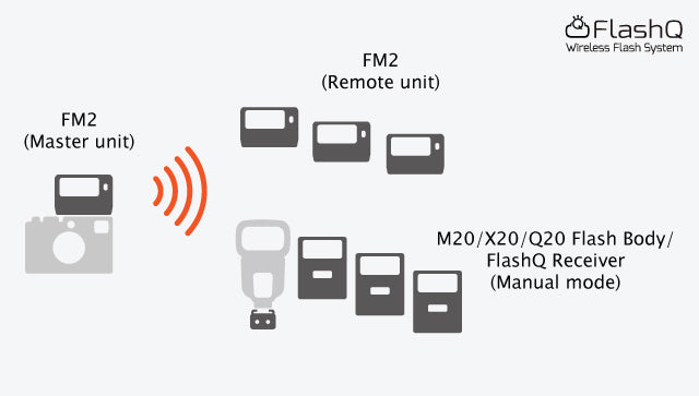 Not only as a on-camera flash, FM2 has the FlashQ radio inside. By setting FM2 to Master unit / Remote unit, multiple flashes setup can be achieved. And FM2 can work with other FlashQ flashes wirelessly. |