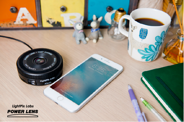 Generally pancake lens is a short-barrelled camera lens with very flat and thin shape making it lightweight and compact. POWER LENS follows the visual styling. Unlike a photographic pancake lens of fixed focal length which you would never put anything on top of, you can put your phone on top of POWER LENS to charge it! That's cool. ![]() |