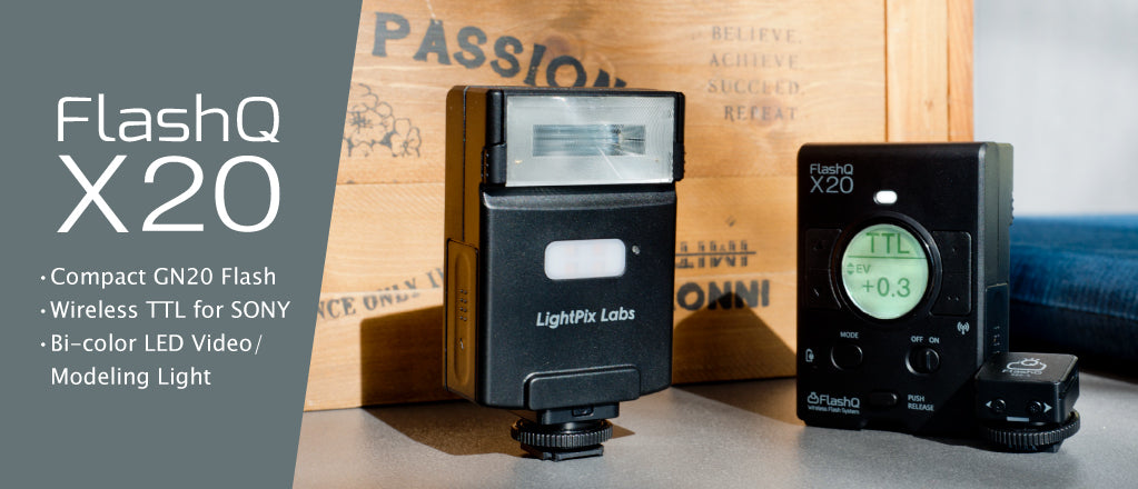 | FlashQ X20 is a powerful, feature-rich wireless flash, designed for off-camera flash photography. And it is small enough to fit in a pocket, the portability makes it a perfect match for compact mirrorless cameras. |