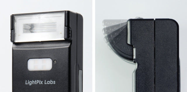 For ease of setup bouncing light effects, X20 flash head can tilt up to 90°, with click-stops at 0°, 45°, 60°, 75°, 90°. ![]() |