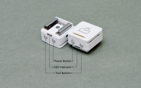 | Both FlashQ transmitter and receiver get the same user interface: 2 buttons and 1 tri-color LED indicator. |